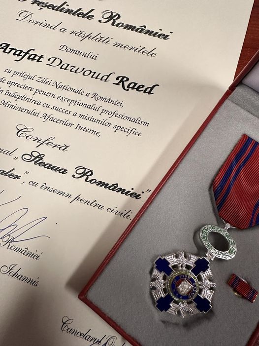 Pentru mine, această decorație reprezintă un îndemn puternic pentru a continua, alături de colegii mei, munca depusă în serviciul țării noastre și dezvoltarea sistemului integrat de urgență, devenit deja un model recunoscut pe plan internațional. Totodată, vreau să adresez mulțumirile mele domnului ministru Lucian Bode pentru încrederea acordată și pentru faptul că m-a propus pentru această prestigioasă și onorantă decorație!”, a scris pe Facebook Raed Arafat.