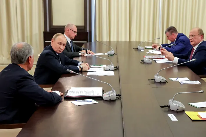 Vladimir Putin, în timpul unei întîâlniri cu liderii facțiunilor din Duma de Stat