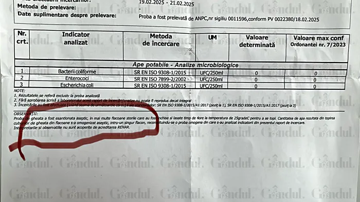 În subsolul ultimei pagini a buletinului, obținut de Gândul în exclusivitate, de altfel, este specificat faptul că „interpretările și observațiile nu sunt acoperite de acreditarea RENAR, după cum ne-a declarat și șeful ANPC, Cristian Popescu Piedone.