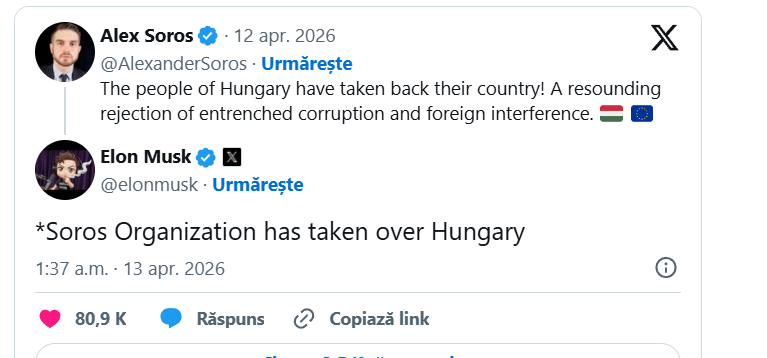 Reacțiile la rezultatele alegerilor din Ungaria au creat mediul pentru un schimb de acuzații pe rețelele sociale, asta după ce Elon Musk a susținut că „Organizația Soros a preluat controlul” asupra țării.