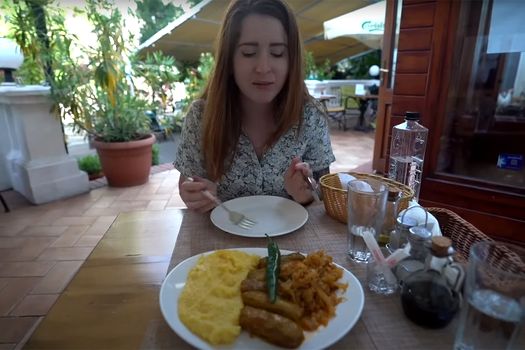 Cum a REACȚIONAT turista britanică din imagine, după ce a mâncat sarmale cu mămăliguță în România: „Au gust de…”