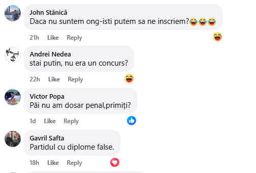 Nu au lipsit nici glumele utilizatorilor de Facebook, care s-au întrebat de ce nu apare în fotografii și fostul ministru al Apărării, Ionuț Moșteanu. Alți români se scuză că nu se pot înscrie în USR pentru că au deja diplome valabile.