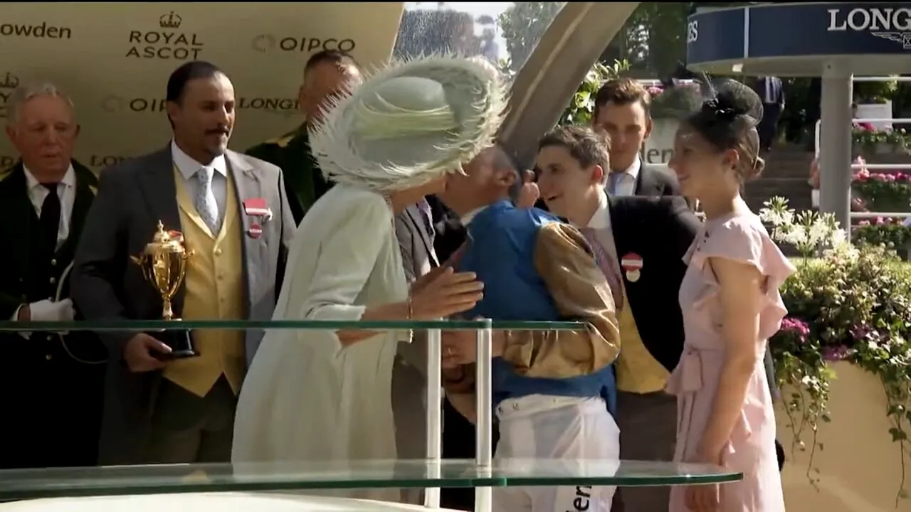 Conform imaginilor care au apărut în social media, jocheul este felicitat în perechea regală, iar, la un moment dat, se întinde și îi sărută obrazul Reginei Camilla.