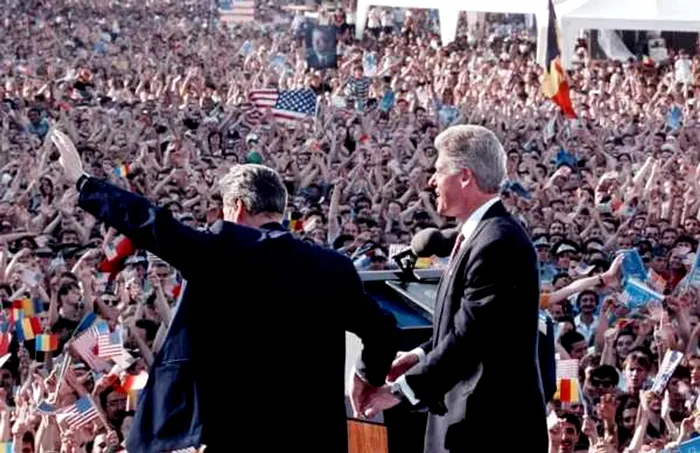 Emil Constantinescu dezvoltă statutul României de partener strategic al Americii. 150.000 de oameni îl aclamă pe Clinton la București