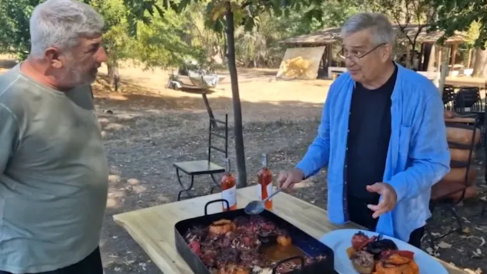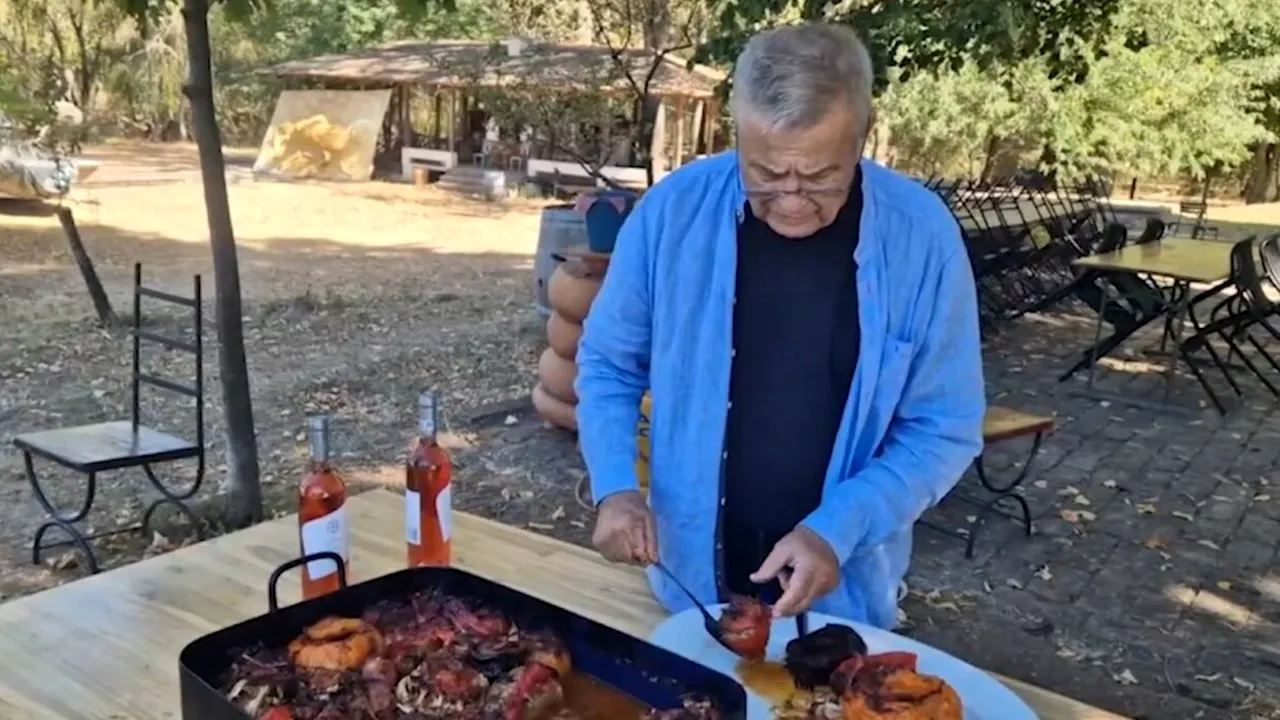 ”Asta ce crezi că e? Se pune în cozonac, stafide. Usturoiul ăsta copt, eu sunt înnebunit, e ca o bomboană fondantă. Ăștia umpluți (n.r. – ardei) acadea. Noroc, la mulți ani!, a mai comentat talentatul bucătar”.