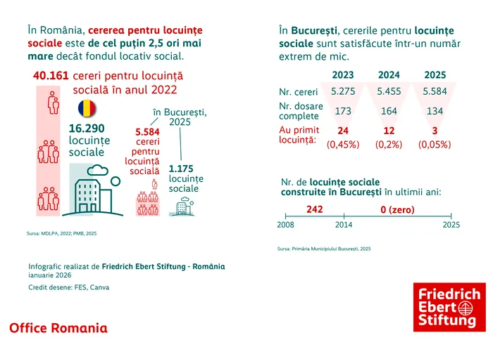 Datele prezentate pe romania.fes arată clar dimensiunea problemei: România se află pe ultimul loc în Uniunea Europeană în privința fondului de locuințe sociale. Doar 0,17% din totalul locuințelor existente sunt locuințe sociale. Este un procent aproape simbolic, mai ales dacă îl comparăm cu alte state europene.