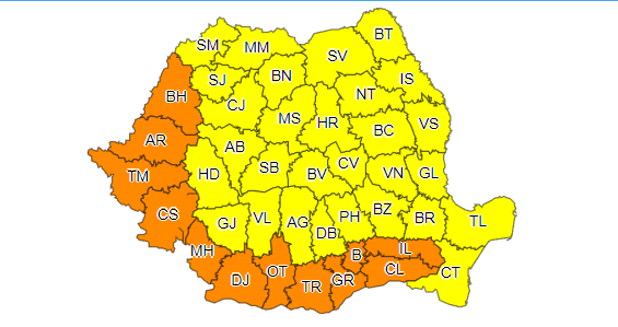 Vineri, canicula se va intensifica în Crișana și Banat unde se vor înregistra temperaturi maxime de 37…39 de grade, precum și în jumătatea de sud a Olteniei și a Munteniei, unde vor fi temperaturi maxime de 39…41 de grade.
