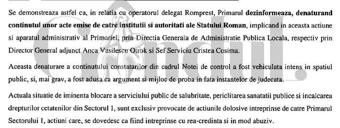 Actuala situație de iminentă blocare a serviciului public de salubritate, periclitarea sănătății publice și încălcarea drepturilor cetățenilor din Sectorul 1, sunt exclusiv provocate de acțiunile dolosive întreprinse de către Primarul Sectorului 1, acțiuni care se dovedesc ca fiind întreprinse cu rea-credință și în mod abuziv.