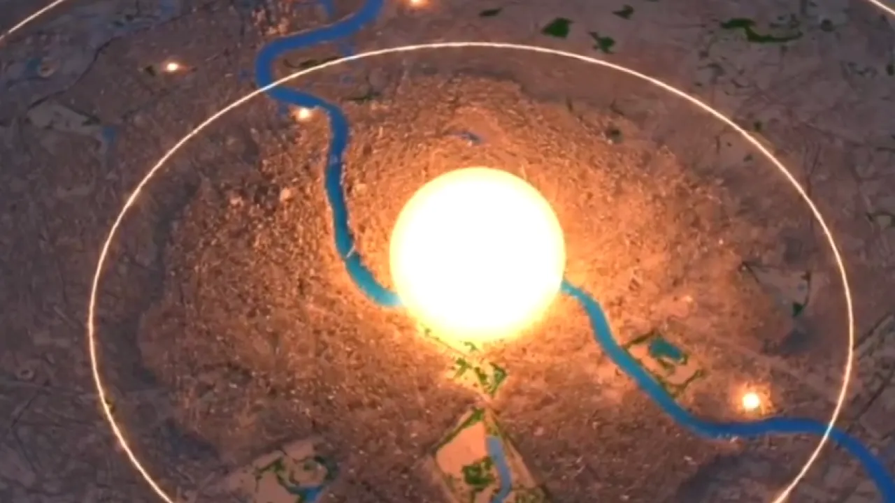 „La detonare, o minge de foc la fel de fierbinte ca soarele se extinde rapid, atingând un radius de 950 de metri. Orice prins în această minge de foc este vaporizat instantaneu. În simularea noastră, epicentrul exploziei este la Westminster,” se afirmă în comentariul videoclipului.