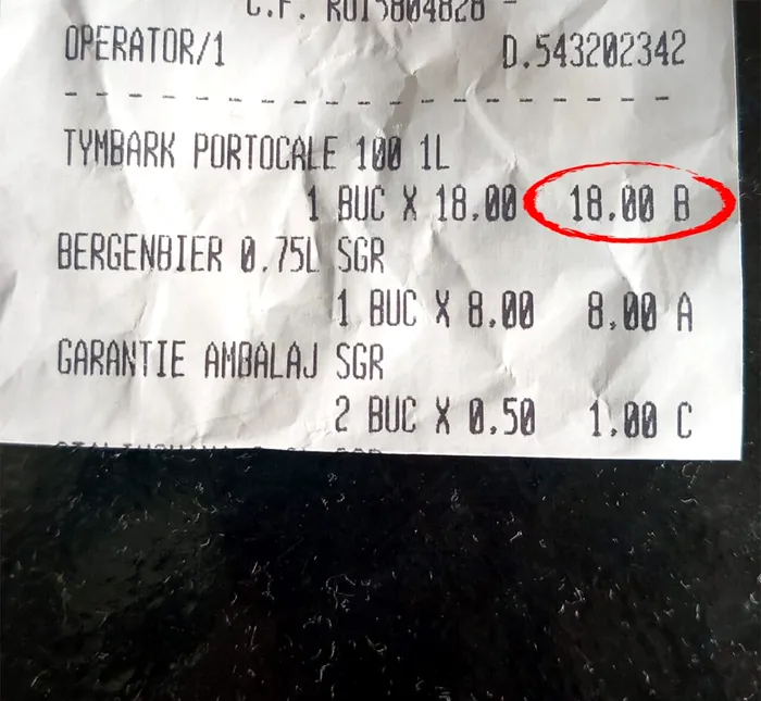 Atunci când a ajuns la casa de marcat, a avut surpriza neplăcută să vadă că pe bon sucul respectiv figura cu o suma de trei ori mai mare.