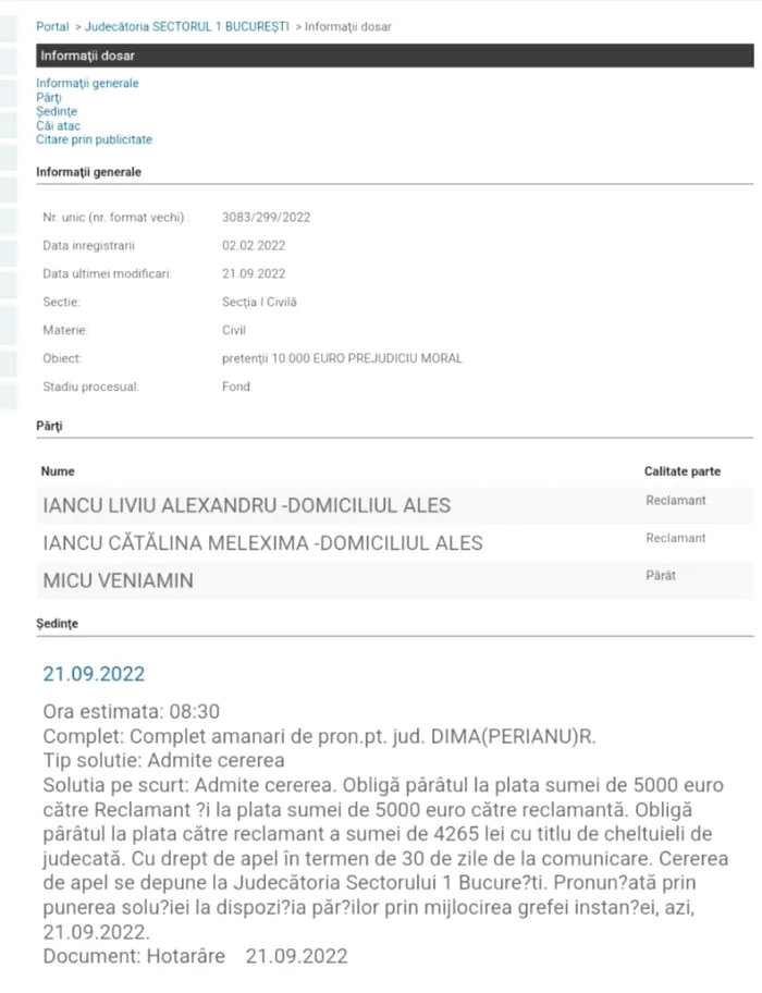 „Soluție inedită și unică. Daune morale de 10.000 de euro pentru deranjarea vecinilor de la etajul inferior. Plimbatul cu role prin apartament și muzica dată tare i-a costat fix 10.000 de euro”, scrie avocatul Cuculis.