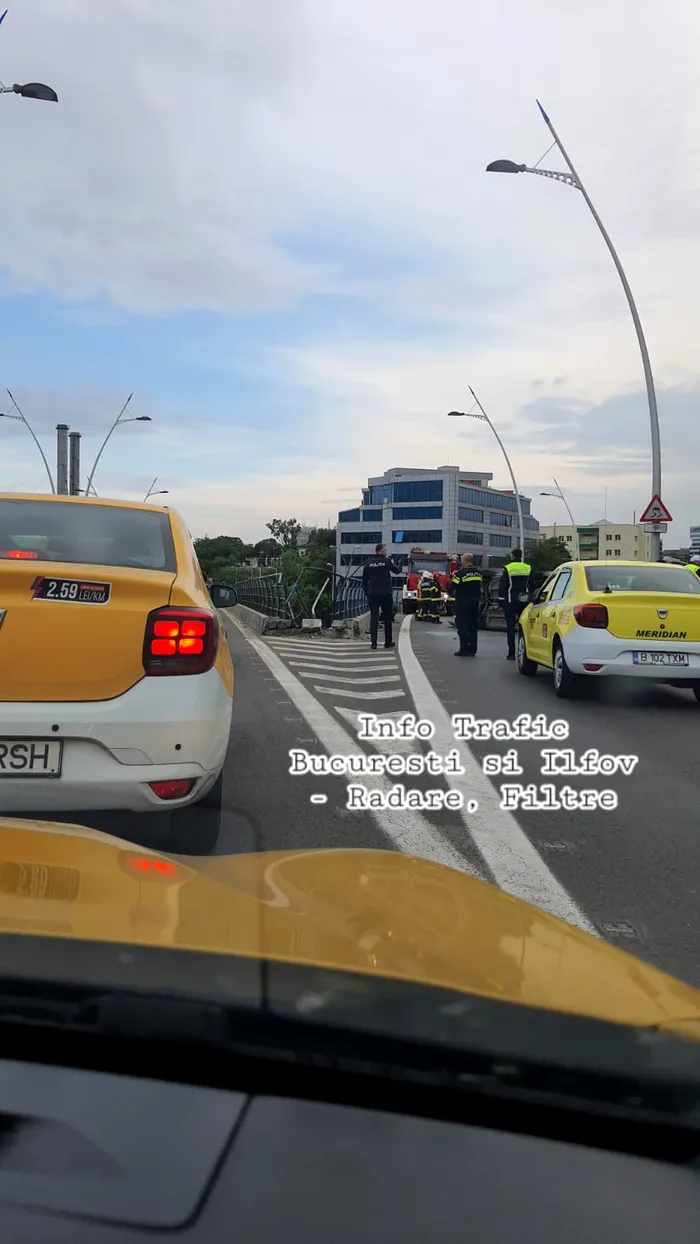 Accidentul s-a produs în jurul orei 17:40, când conducătoarea auto, care se deplasa dinspre Bd. Nicolae Titulescu, a pierdut controlul asupra direcției de mers în dreptul bretelei de coborâre către Bd. Doina Cornea și a lovit balustrada de protecție a pasajului, apoi s-a răsturnat pe o parte.