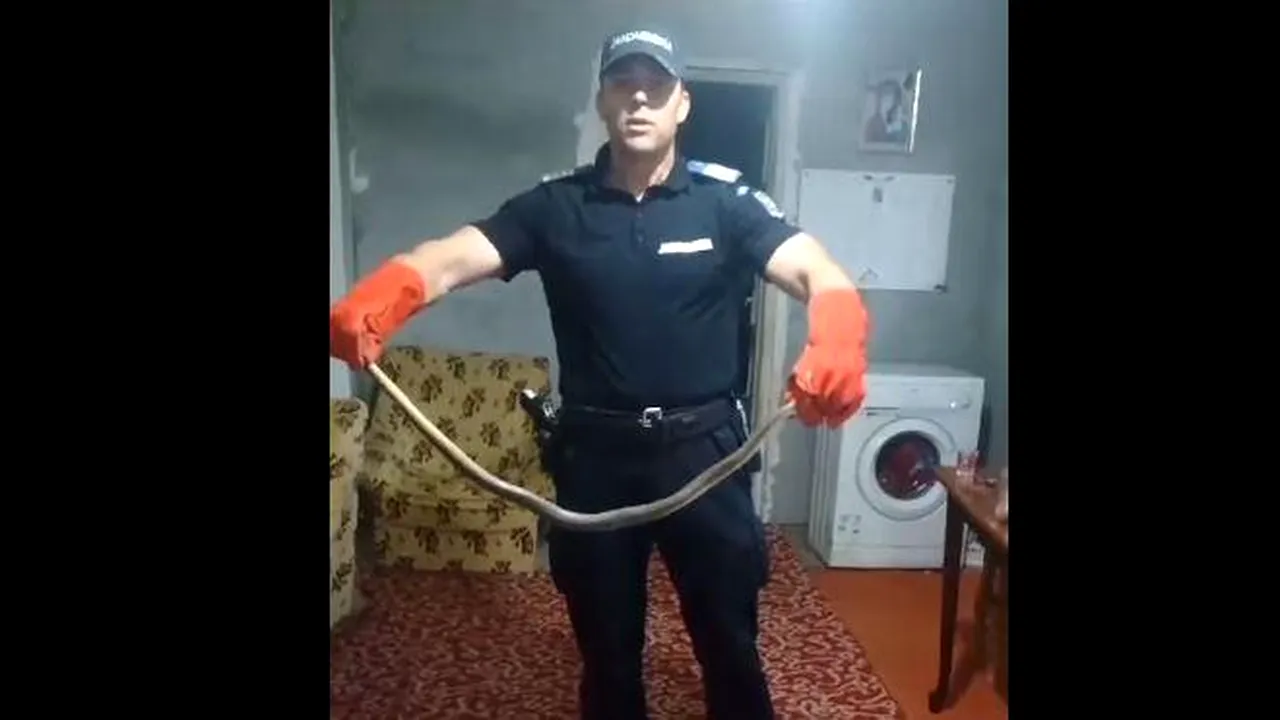 Reprezentanţii Inspectoratului de Jandarmi Judeţean Constanţa au anunţat că jandarmii au fost sesizaţi, prin apel 112, că într-o locuinţă din satul Arsa, județul Constanța, se află un şarpe de peste doi metri.