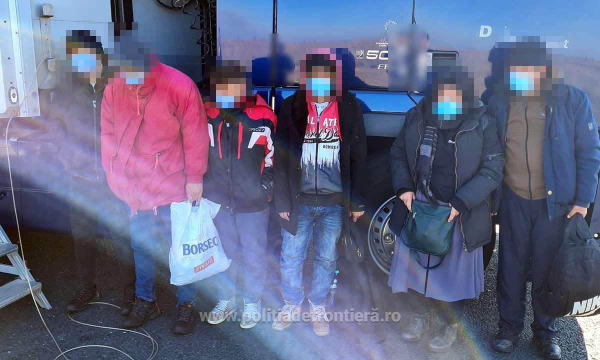„În urma efectuării controlului amănunţit al mijlocului de transport, au fost descoperiţi, ascunşi în compartimentul pentru marfă, șase cetăţeni străini.