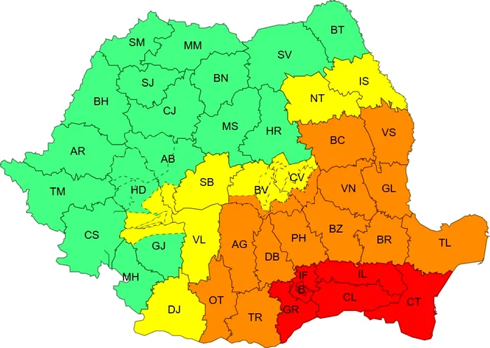 Potrivit ANM, în județele Constanța, Călărași, Ialomița, Giurgiu, Ilfov și în municipiul București va ploua torențial și abundent, izolat se vor semnala descărcări electrice, iar în intervale scurte de timp sau prin acumulare vor fi cantități de apă de 80 – 100 și izolat 120 – 140 l/mp.