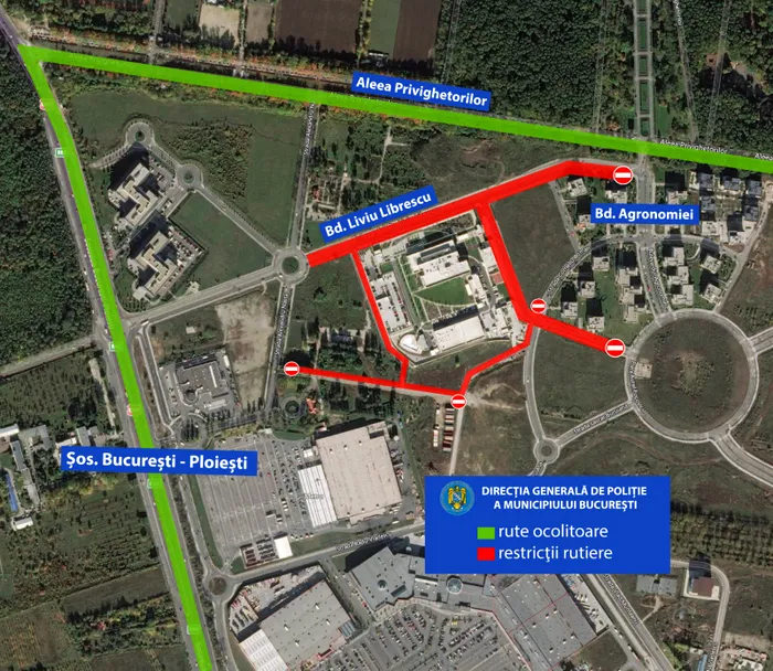 Astfel, pentru buna desfăşurare a evenimentului, în intervalul orar 16:15 –21:30, se va restricţiona total traficul rutier pe Bd. Dr. Liviu Librescu și străzile adiacente cu acesta, în porțiunea cuprinsă între Piața Ion Maier (sensul giratoriu și Bd. Agronomiei), str. Vasile Gheție(între Bd. Dr. Liviu Librescu și Str. Corneliu Roman), strada fără nume care mărginește cartierul de blocuri, la incidență cu Str. Corneliu Roman, strada fără nume din zona vestică a ambasadei și drumul de servitute situat între Bd. Alexandru Nasta (zona sudică a Ambasadei SUA) și str. Corneliu Roman.