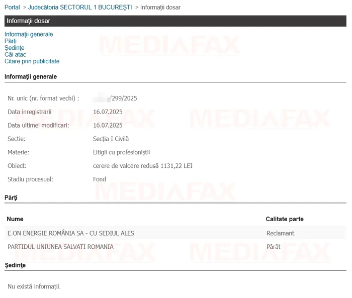 Partidul Uniunea Salvați România are statutul de pârât într-un proces cu furnizorul de energie E.ON. Energie România SA. Compania a chemat în instanță formațiunea care l-a susținut pe Nicușor Dan la prezidențiale pentru că are o factură restantă în valoare de 223 de euro.