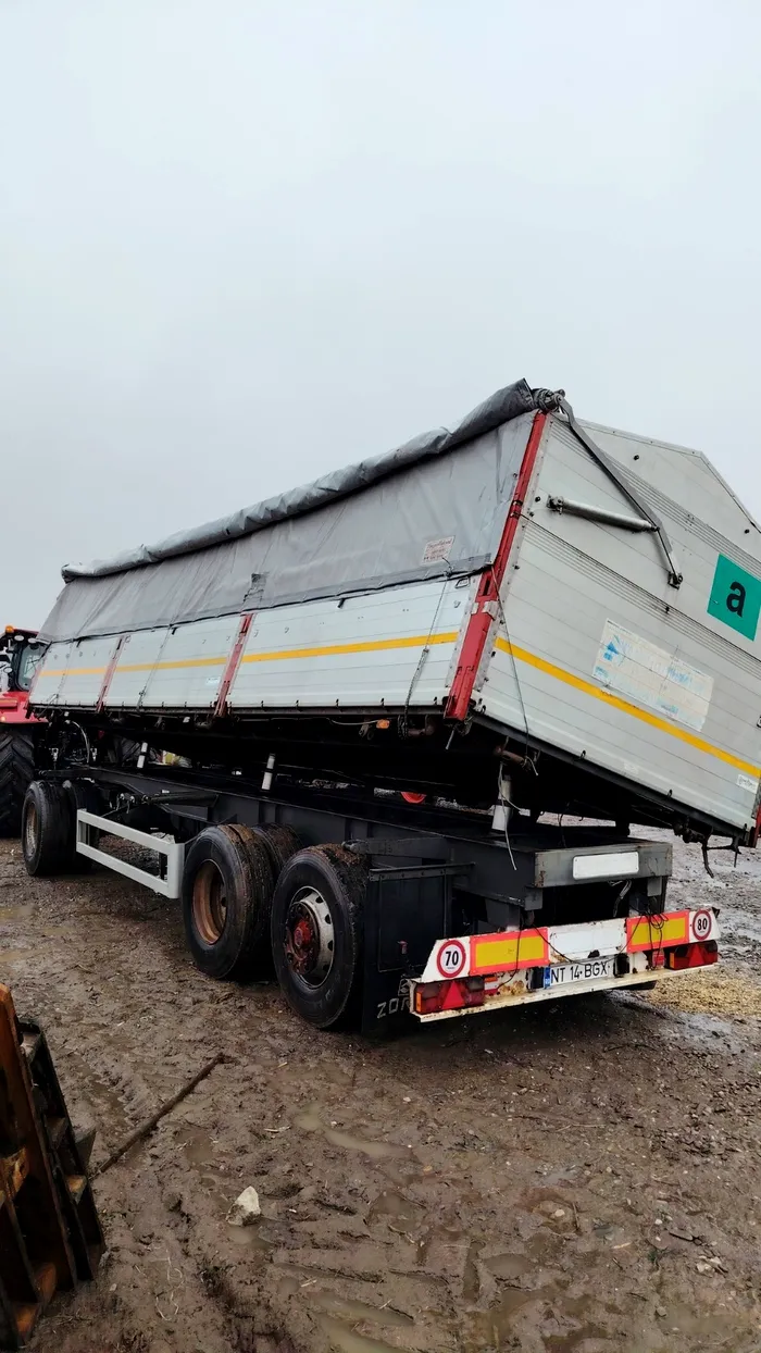 Remorca Zorzi este înmatriculată și, într-adevăr, impresionează prin specificațiile tehnice și capacitatea de încărcare. De altfel, proprietarul menționează că a transportat fără probleme până la 26 de tone de porumb boabe.