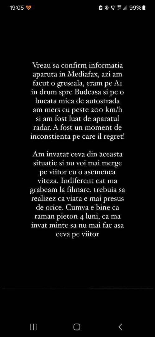 Selly, desemnat cel mai cunoscut influencer din România, se deplasa către Pitești, iar la km 35 a fost surprins de radarul polițiștilor de la Brigada Autostrăzi.