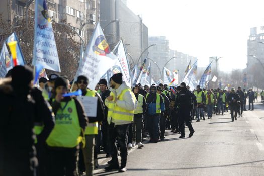 Poliţişti, agenţi de penitenciare şi alţi angajaţi ai structurilor de ordine publică şi siguranţă naţională au organizat, vineri, un marș de protest. Sindicaliștii au plecat din Piaţa Constituţiei, pe Bulevardul Unirii, spre sediul Ministerului Afacerilor Interne.