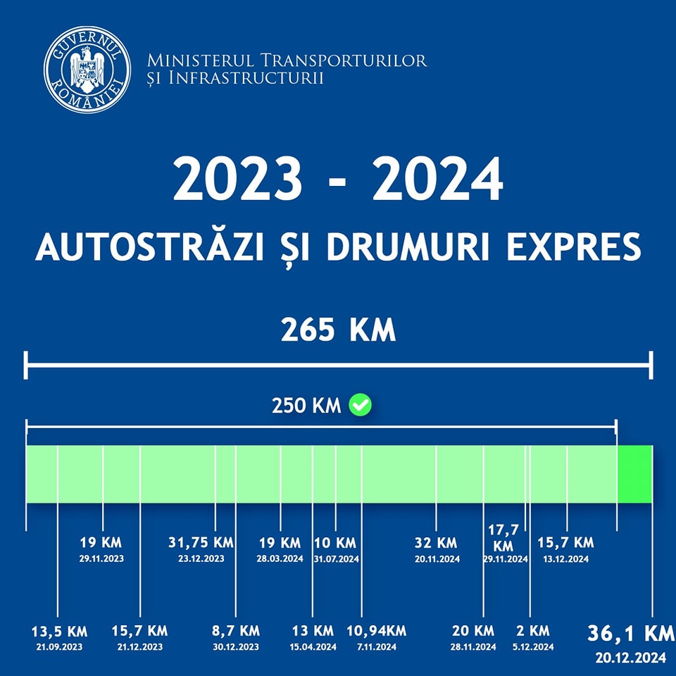 Pe final de mandat ca ministru al Transporturilor, Sorin Grindeanu a făcut un scurt bilanț al realizărilor sale în materie de infrastructură. Ministrul prezintă o situație cu datele la care au fost gata cei 265 km de autostradă și drum expres.