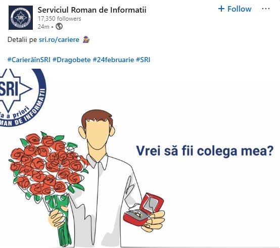 De Dragobete, Serviciul Român de Informații a ales să iasă din registrul sobru și să adopte un ton relaxat pe rețelele sociale. Instituția a publicat pe Facebook și LinkedIn mesaje cu tentă ironică, adaptate sărbătorii iubirii la români, stârnind reacții rapide din partea internauților.