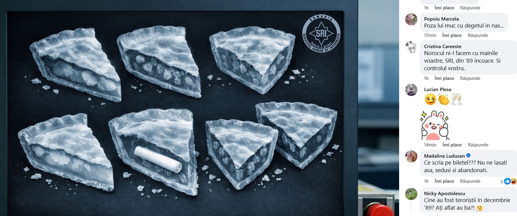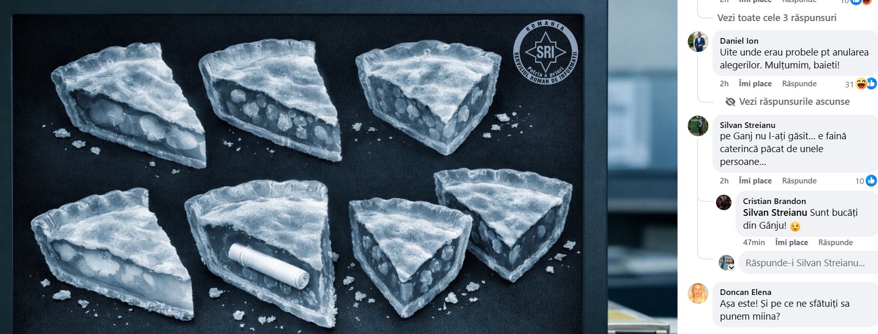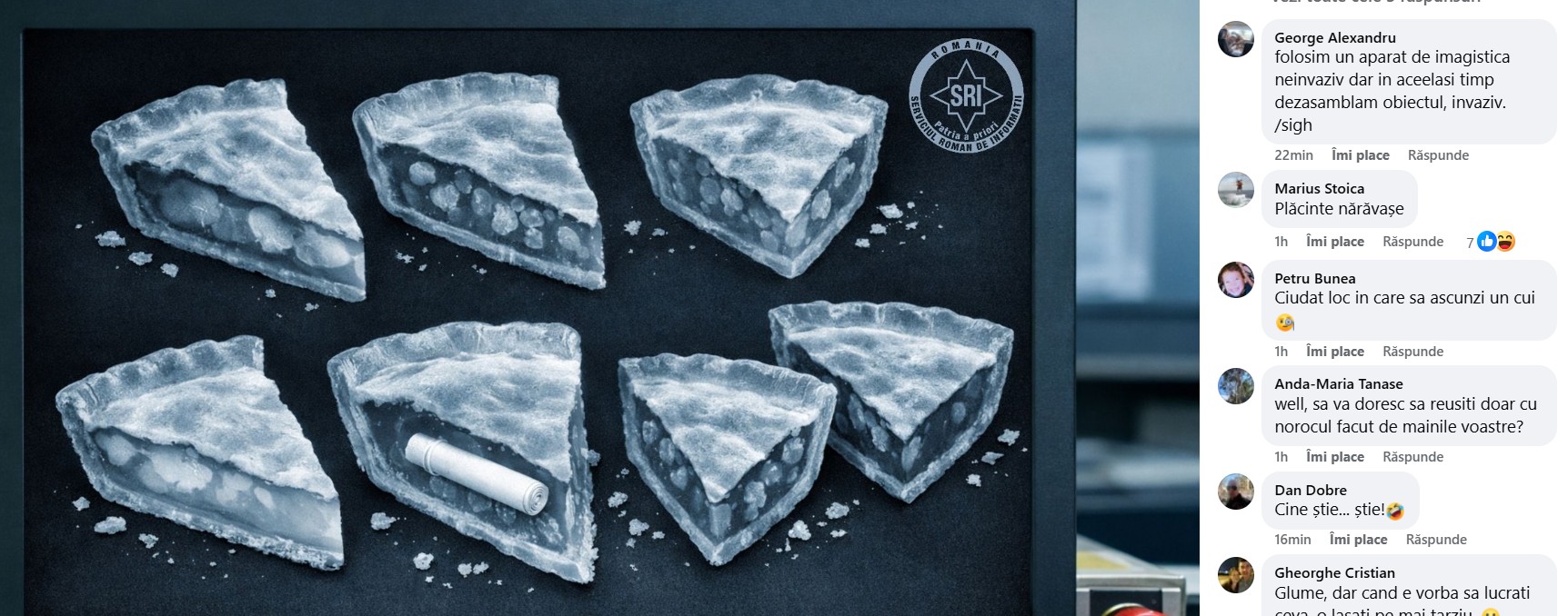 Mesajul postat de SRI, plin de umor şi semnificaţii, vine însoţit de o poză sugestivă, pe pagina oficială de facebook.