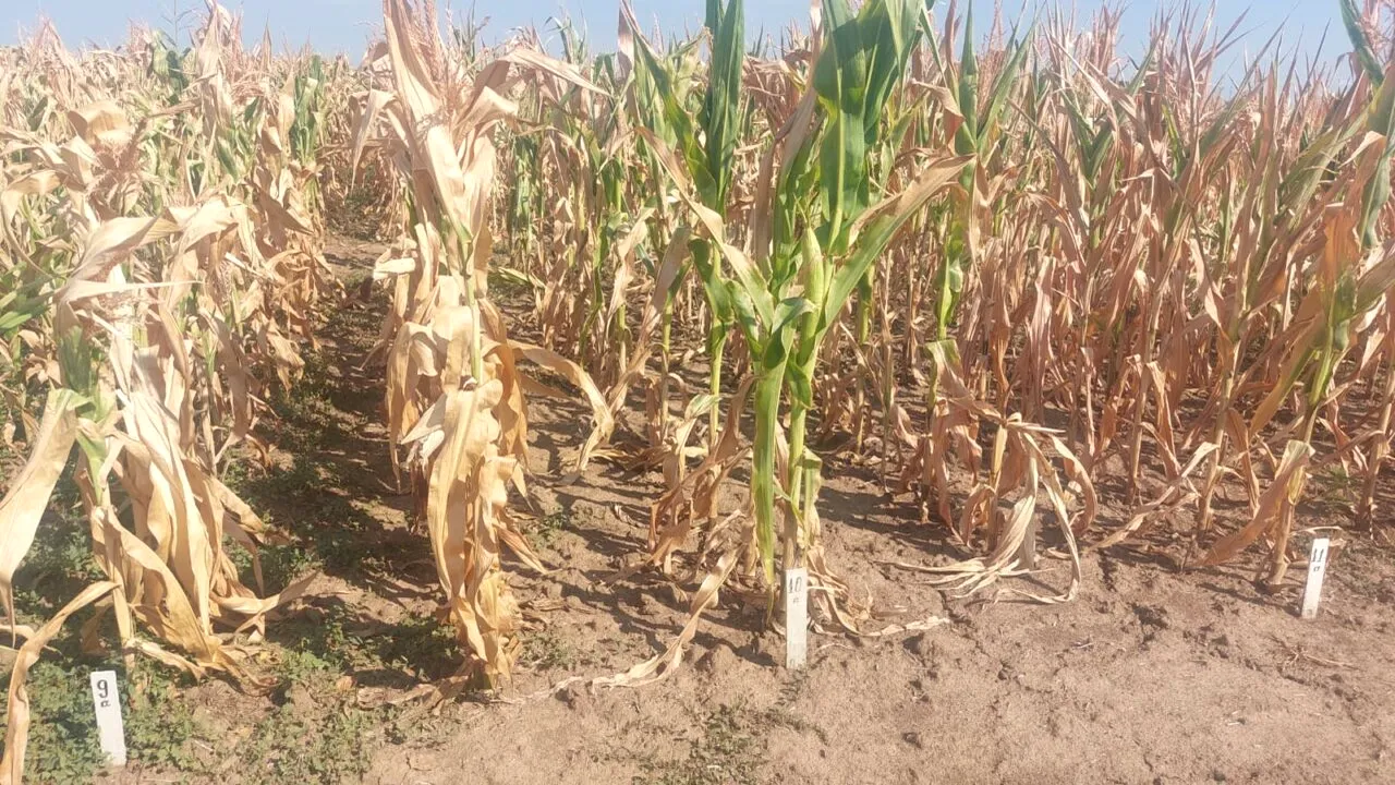 Acum două zile a plouat 4 litri pe metru pătrat și conducerea stațiunii spune că și 25 de litri, dacă ar fi plouat, tot nu mai salvează nimic. Și câmpul experimental, unde sunt peste 19 de hibrizi rezistenți la secetă, este pârjolit.