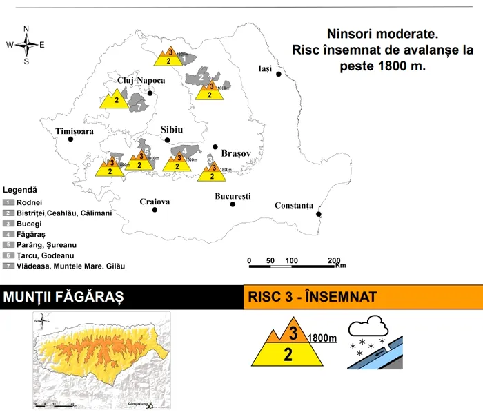 Potrivit buletinului nivometeorologic, pentru 7 – 9 ianuarie, ninsorile sunt moderate și există risc însemnat de avalanșe la peste 1.800 metri.