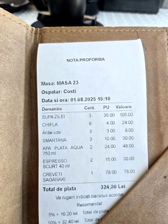 O turistă din România a ales litoralul din țara noastră pentru vacanța de vară, mai precis stațiunea Costinești. Printre numeroasele amintiri, ea a postat pe pagina sa de Facebook și o notă de plată de la un restaurant din zonă.