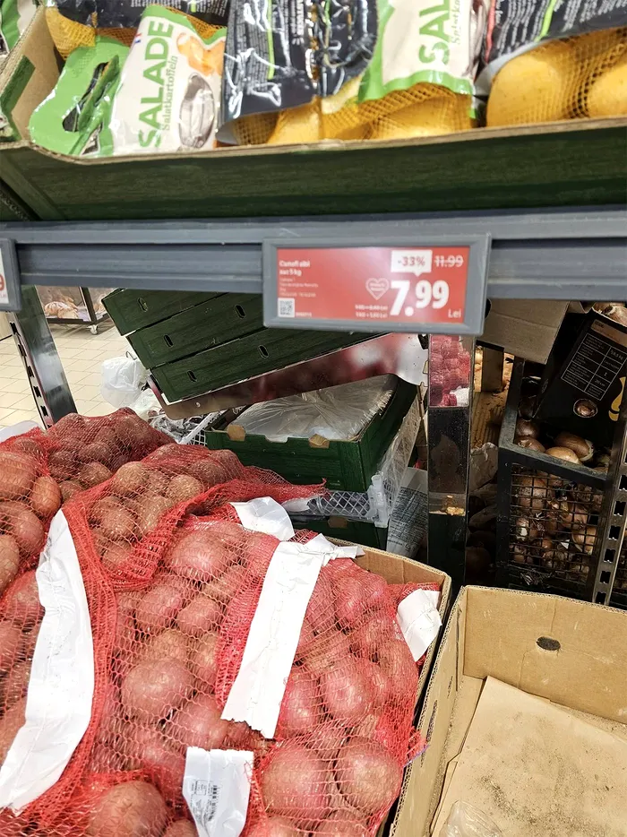 „Cartofi cu 1,6 lei kilogramul, iarna! Ați mai văzut așa ceva, vreodată? Sacul de 5 kilograme costă 7,9 lei”, este mesajul postat pe pagina de Facebook „Perfect”.