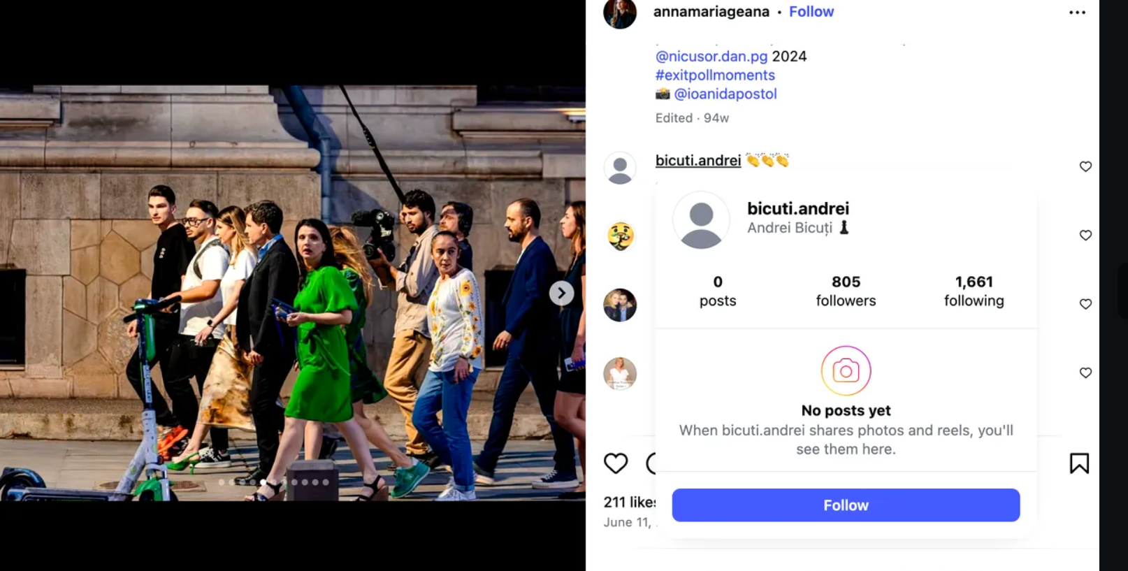 În imaginile de pe rețelele de socializare, acesta apare cumva coordonând/ gestionând echipa de filmare a candidatului Dan, fiind alături de consiliera președintelui Ana Maria Geană. Ea este fosta consilieră a lui Nicușor Dan de la Primăria Capitalei, actual consilier de stat al Președintelui pentru românii de pretutindeni, în Departamentul de Politică Externă al Palatului Cotroceni.