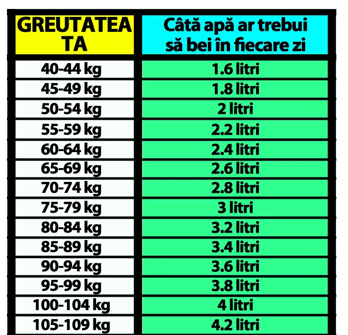 Câți litri de apă ar trebui să bei în fiecare zi, în funcție de greutate ta actuală? Apa este extrem de importantă pentru organismul uman, practic fără apă nu poți trăi.