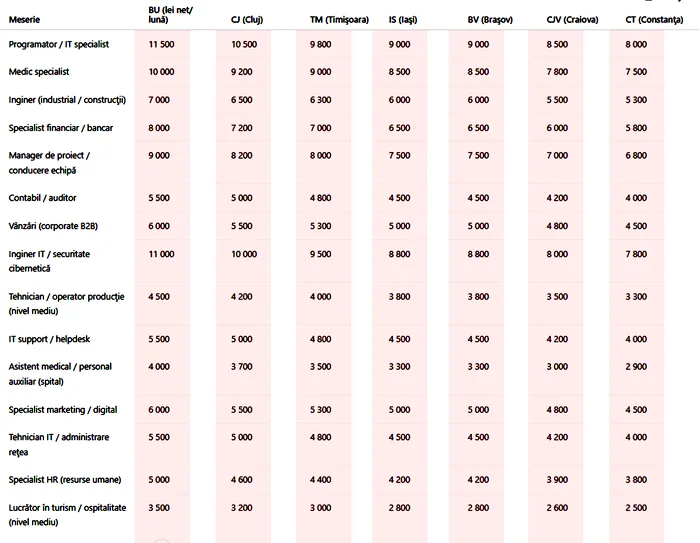 România continuă să fie o țară a contrastelor, în care până și aceeași meserie este plătită diferit de la un oraș la altul, în funcție de regiunea în care lucrezi. Pornind de aici, iată ce salariu ar trebui să primești în 2025 pentru job-ul pe care îl ai, dar totul raportat la orașul de reședință.