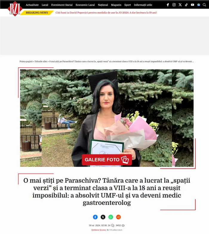 Paraschiva Apostol (31 de ani) este o tânără din Vaslui care a absolvit Facultatea de Medicină din Iași și care va profesa ca medic gastroenterolog.