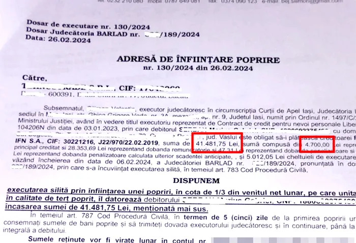 Tânăra familie din Bârlad a primit recent vestea șocantă că, pentru împrumutul unei sume de 4.700 de lei, făcut anul trecut în luna ianuarie, au de achitat fără niciun drept de apel, 41.481 lei.