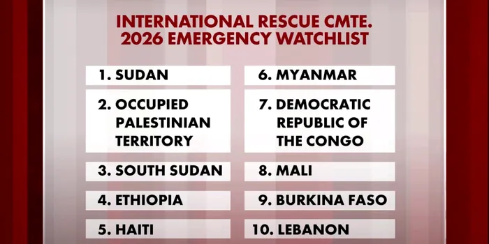 Conform listei IRC, pe locul al doilea în lista celor mai grave crize se află teritoriile palestiniene , urmate de Sudanul de Sud, Etiopia și Haiti .