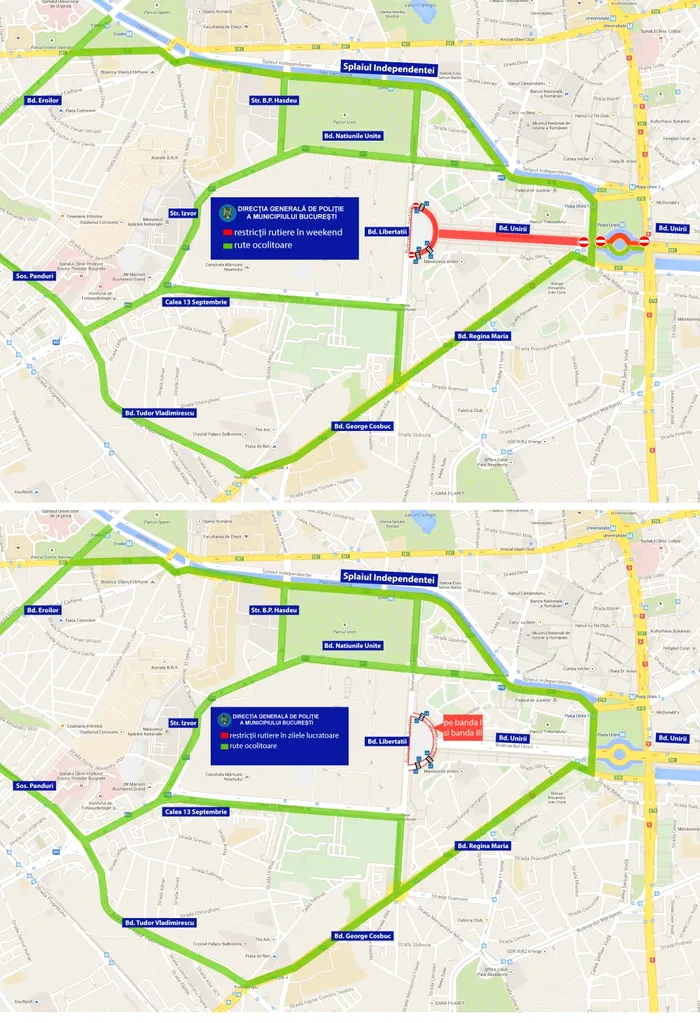 • Bd. Unirii – Spl. Independenţei – Bd. Naţiunile Unite – Bd. Libertăţii –