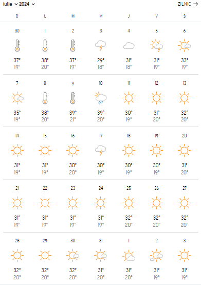 Așadar, în luna lui Cuptor, temperaturile în capitala României vor crește simțitor, ajungând până la valoarea de 39 de grade (la umbră).
