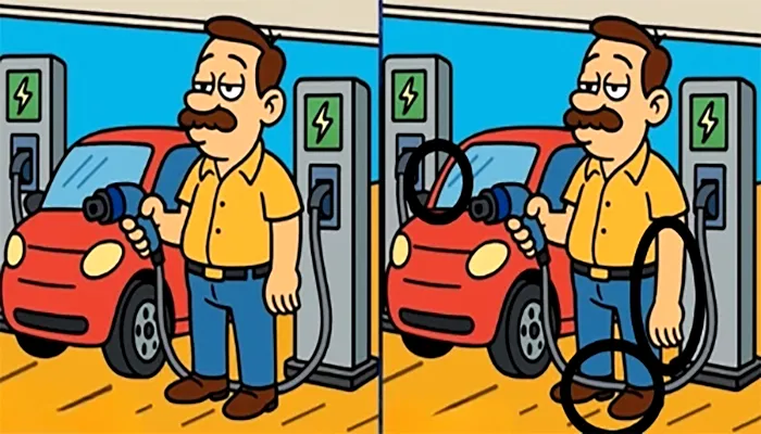 În cele două desene este reprezentat un bărbat într-o benzinărie care vrea să facă plinul mașinii. Printre toate elementele prezente în imagini există trei diferențe. Încercați să le depistați în cel mai scurt timp și, de ce nu, împărtășiți și prietenilor acest test, și vedeți ce rezultate obțin.