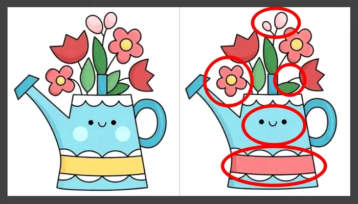 Să vedem dacă rezolvați această provocare de iluzie optică. Ai reușit să descoperi 5 diferențe între cele două vaze cu flori? Dacă nu, află rezolvarea în imaginea de mai jos.