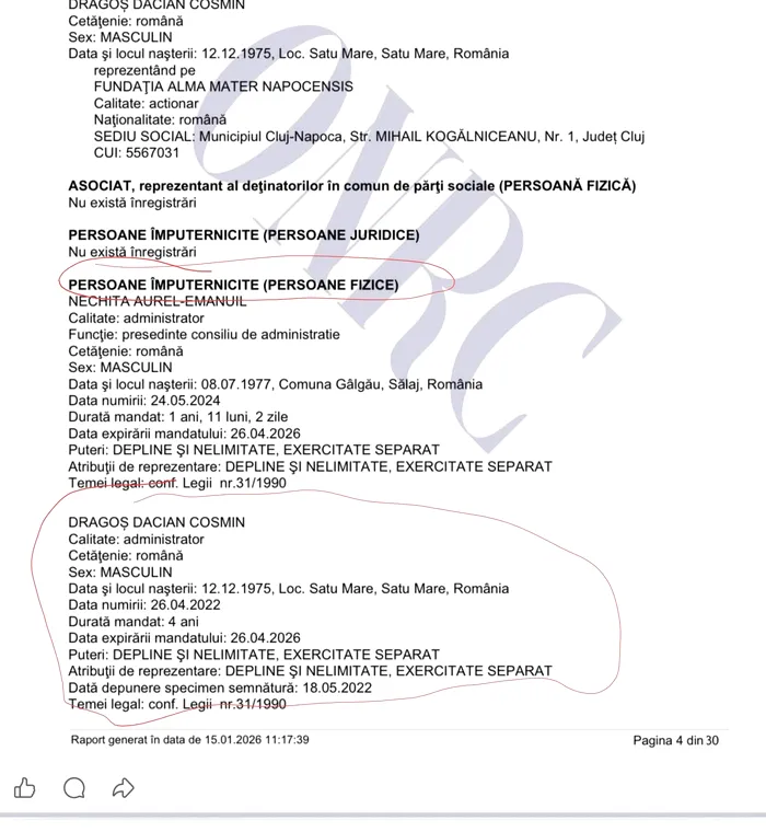Într-o postare publică, Toni Neacșu arată că, potrivit unor documente de la Registrul Comerțului prezentate de avocata Silvia Uscov, Dragoș Dacian deține în continuare calitatea de persoană împuternicită într-o societate comercială pe acțiuni, RADONCONTROL SA, precum și funcția de administrator, în nume propriu, al fundației care este acționar al societății. Mandatul său în aceste funcții este valabil până la 26 aprilie 2026.