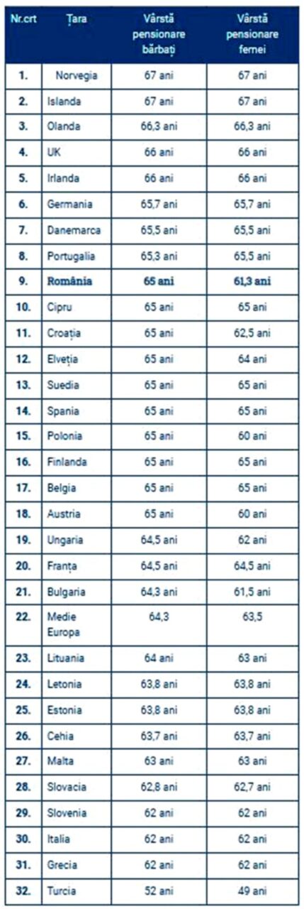 Astfel, țara noastră se poziționează printre țările cu o vârstă înaintată de pensionare în ceea ce privește bărbații.