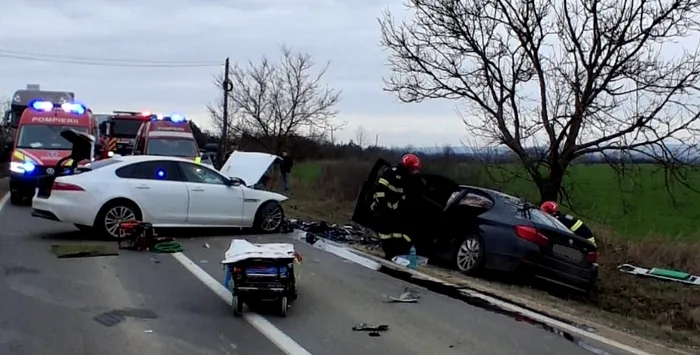 „Din primele investigații efectuate de polițiști, la fața locului, s-a constatat că în accident au fost implicate două autoturisme. În urma accidentului rutier, trei persoane sunt investigate medical la fața locului”, a precizat aceasta.