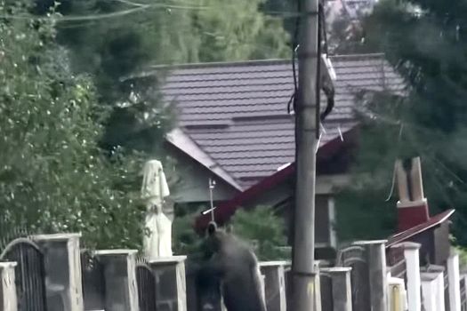 VIDEO / 3 urși au fost filmați în timp ce se săreau gardul unei case din Bușteni.