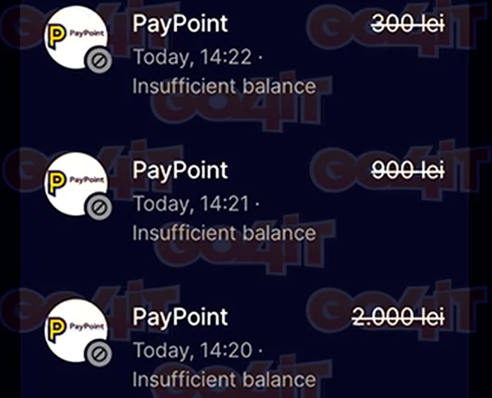 Transferurile au eșuat doar pentru că în cont se afla o sumă insuficientă.