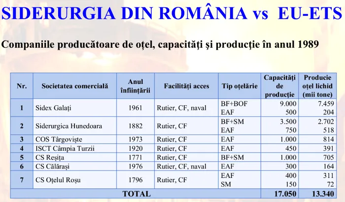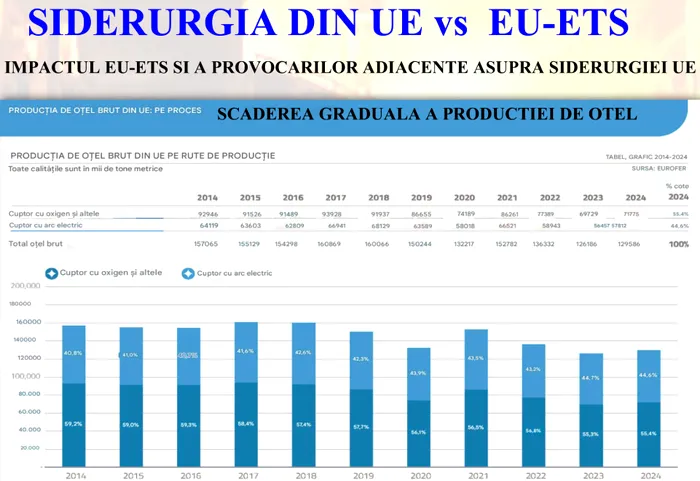Producția de oțel a României a scăzut de la 13 mil. tone pe an înainte de 1990, la circa 2 mil. tone de oțel pe an în 2024.
