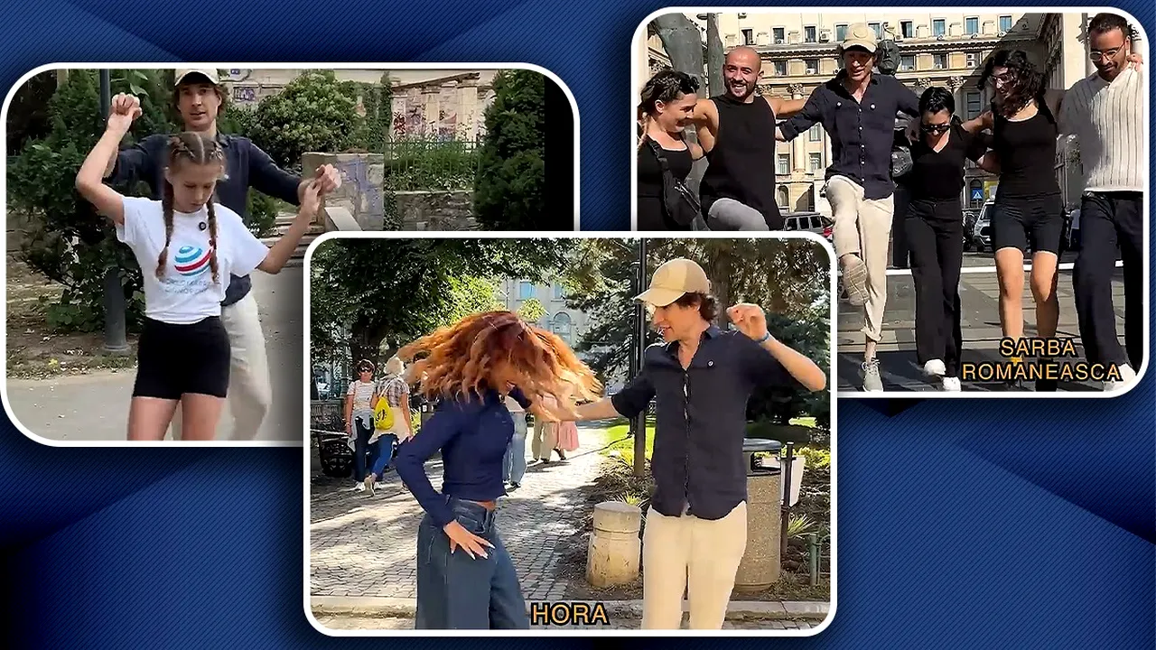 Belgianul a reuşit să molipsească de entuziasm mai mulţi români pe care i-a întâlnit pe stradă şi care au fost de acord să danseze cu el şi să-l înveţe dansurile lor favorite.