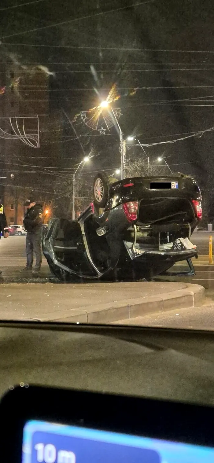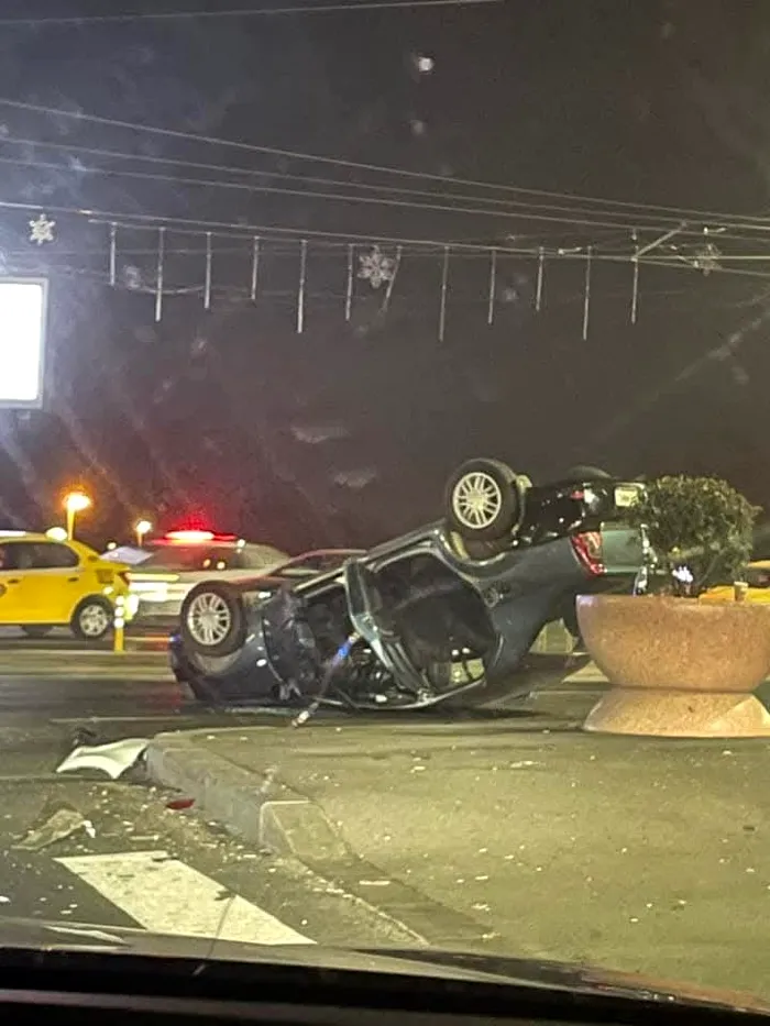 Prima pagină » Actualitate » Un Logan s-a RĂSTURNAT într-o intersecție din sectorul 4, după ce a lovit o maşină de poliţie aflată în misiune