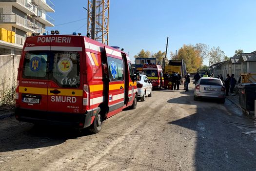 Echipajele de salvare s-au deplasat, joi, la un șantier de blocuri din estul Bucureștiului, unde acordă primul ajutor unui muncitor căzut de la etajul 9 al unui imobil în construcție.